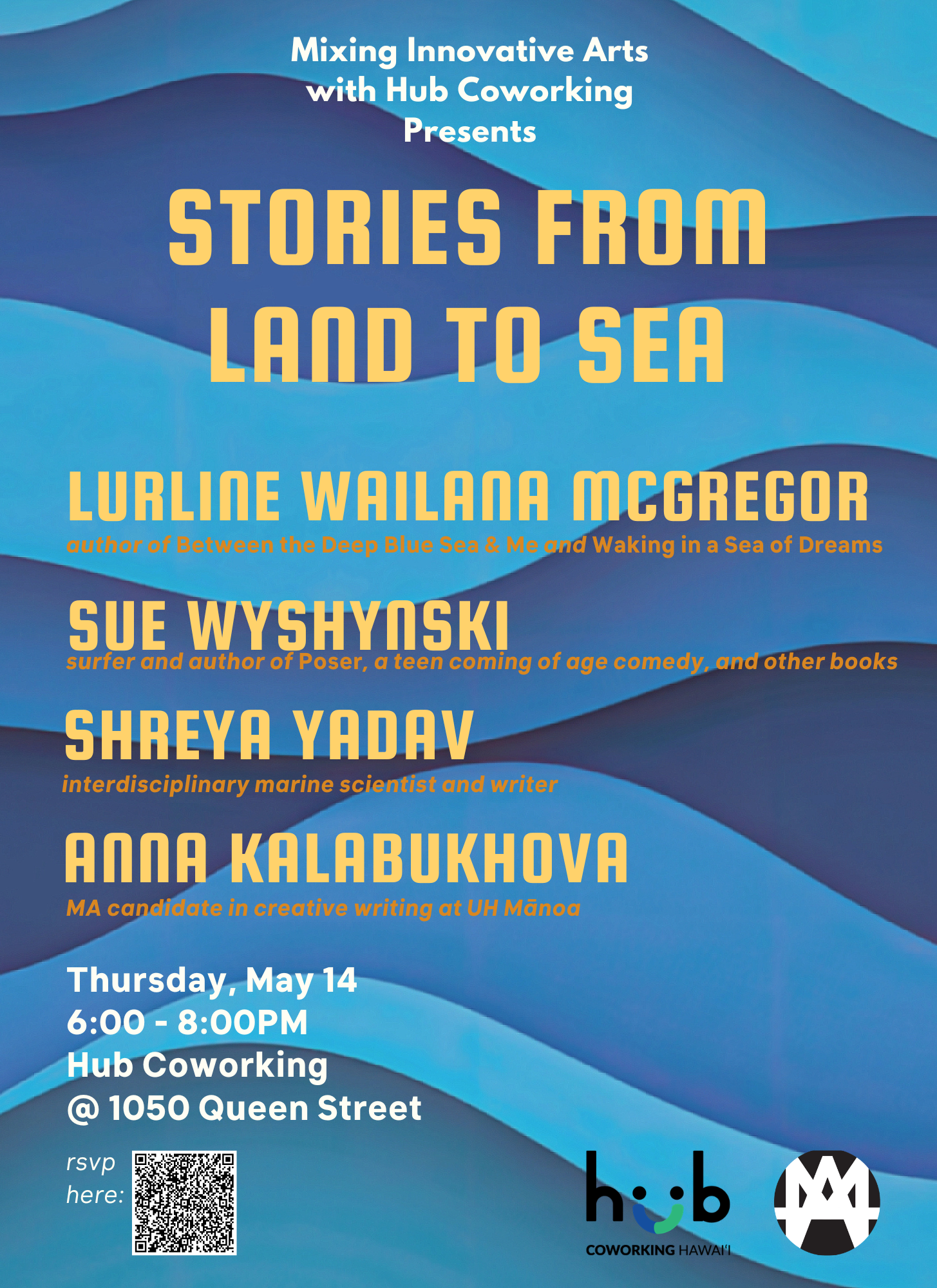May 14: Stories from Land to Sea ReadingK. KahakauwilaApril 11, 2026Lurline Wailana McGregor, Waking in a Sea of Dreams, Anna Kalabukhova, Shreya Yadav Facebook0 Twitter 0 Likes